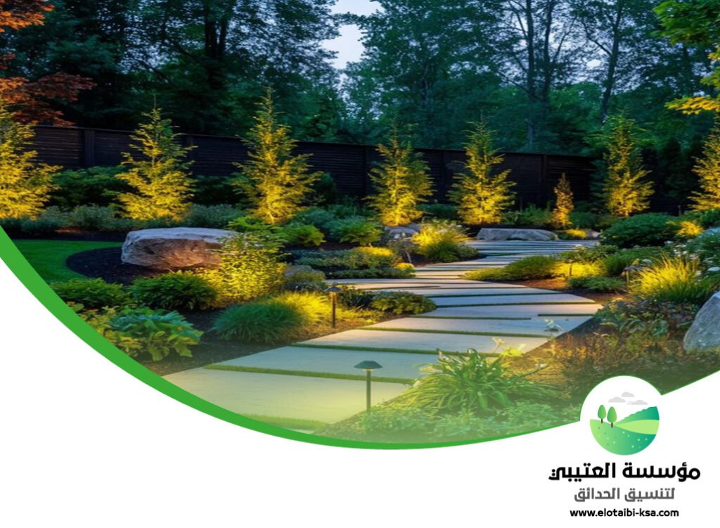كما يتم دمج العناصر الحديثة ضمن مشاريع تنسيق حدائق جنوب الرياض مثل الشلالات والنوافير والممرات الحجرية، مما يمنح الحديقة مظهرًا متكاملًا وفاخرًا.